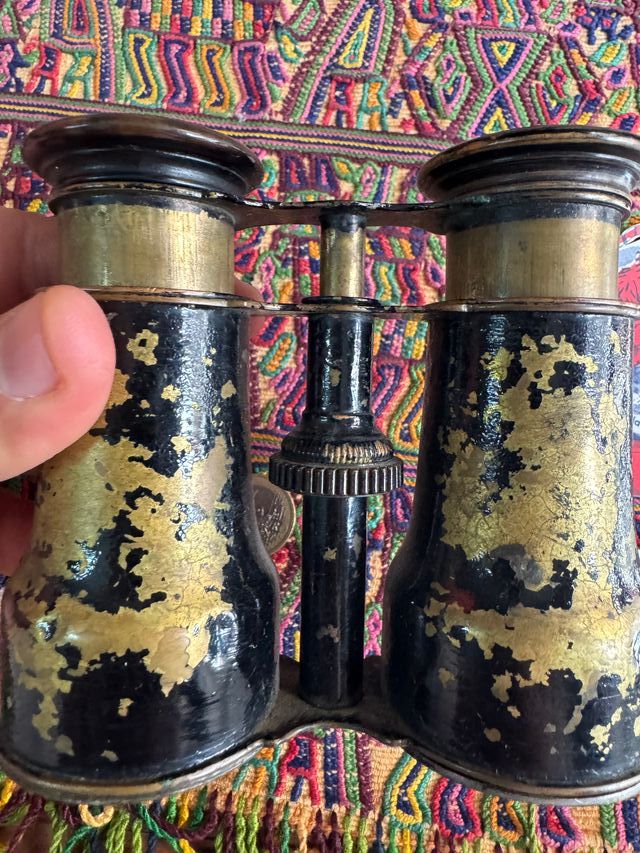Prismáticos binoculares antiguos con cuerpo de metal. Un accesorio clásico con un diseño distintivo.