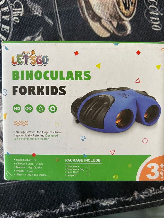 Detalles del productoPrismáticos LET'S GO diseñados para niños, con un agarre ergonómico y resistente a los arañazos.