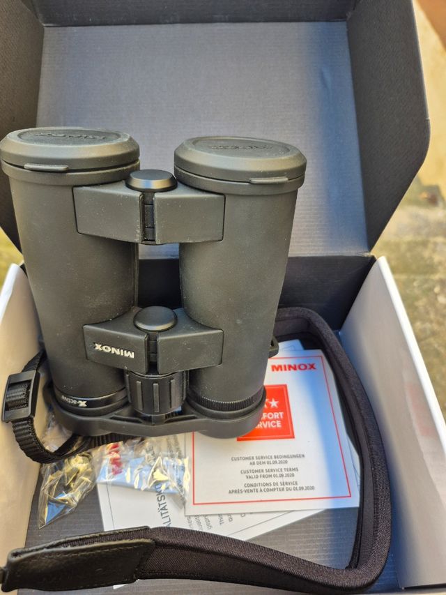 Prismáticos Minox nuevos no sean utilizados, listos para su uso. - Incluye correa de transporte. - Modelo X-active.