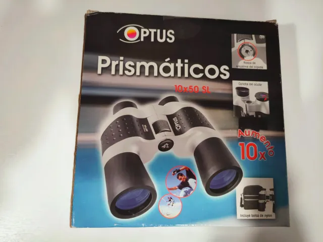 Prismáticos Optus 10x50 SL, con caja, instrucciones y funda. Practicamente sin uso.