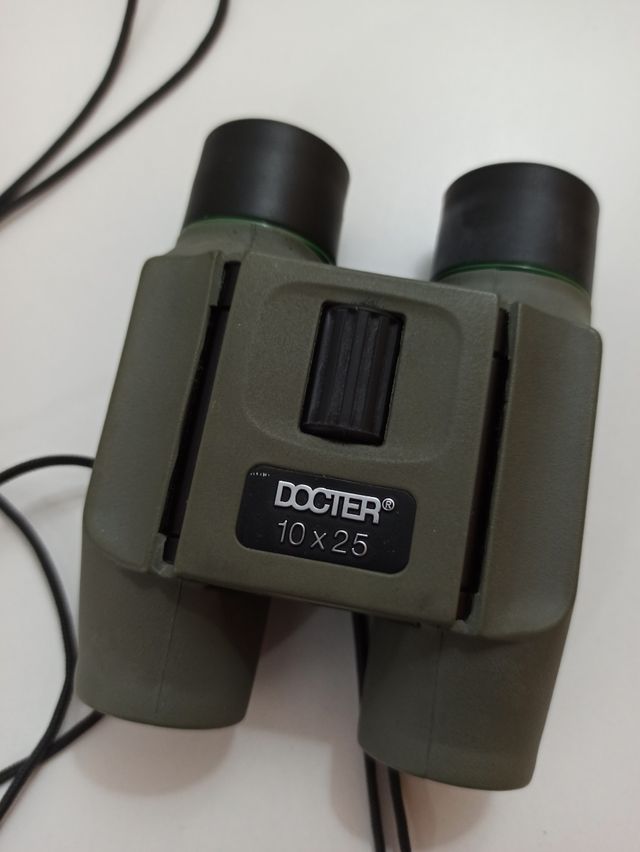 Detalles del productoPrismáticos binoculares profesionales Docter con opticas de altisima calidad Carl Zeiss 10x25, fabricado en Alemania. En su funda original. Son pequeños y ligeros, plegados dentro de la funda: 11cm largox8cm anchox4,5 alto, se guardan en el bolsillo. Su precio en tienda es de mas de 300€. Caza deportes aves