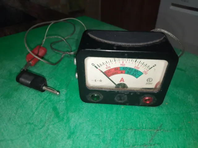 Detalles del productoProbador de baterías vintage con carcasa de polímero de baquelita. El medidor muestra la capacidad de la batería en Amperios-hora (Ah).