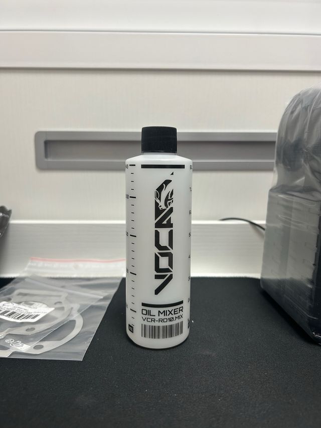Probeta medidora de aceite Voca. - Diseño blanco con escala graduada. - Logo Voca distintivo. - Modelo VCR-RD10.MIX.