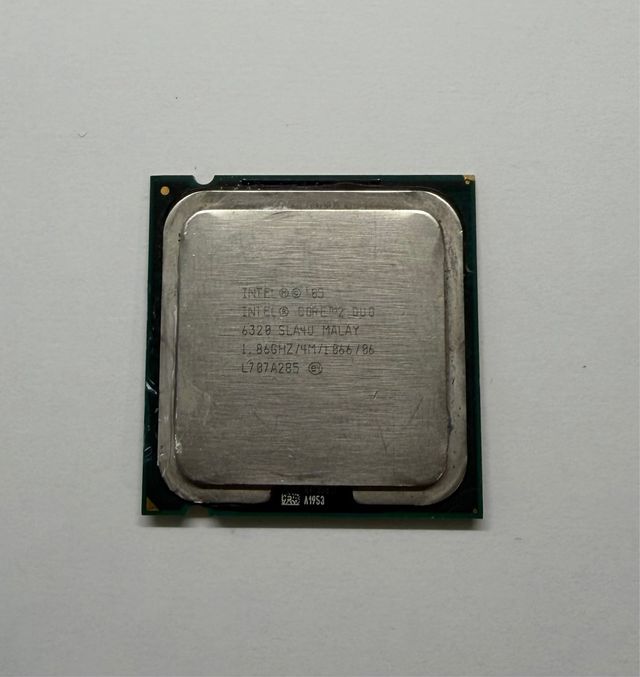 Procesador Intel Core 2 Duo. - Modelo: 6320 SLAYU - Velocidad: 1.86GHz - Caché: 4MB - Bus: 1866/86 - Fabricado en Malasia.