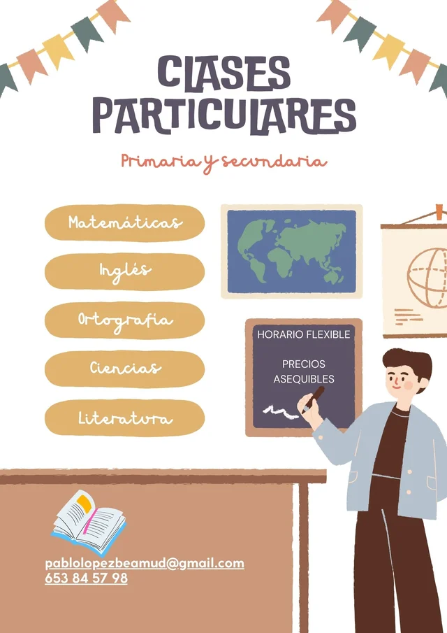 Ofrezco clases particulares personalizadas por solo 12€/hora, adaptadas al nivel y necesidades de cada estudiante. 📝💡 Además, tengo experiencia cuidando niños, creando un ambiente de confianza y motivación para aprender.