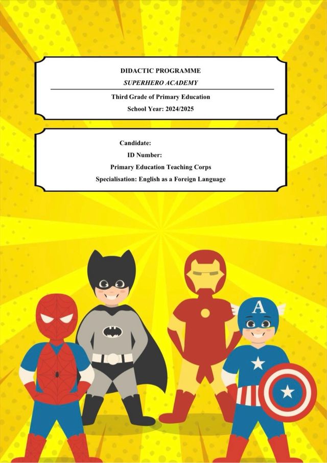 La programación sigue una gamificación ambientada en el mundo de los Superhéroes, totalmente editable, incluye 12 UD con 12 SA como pide la convocatoria.