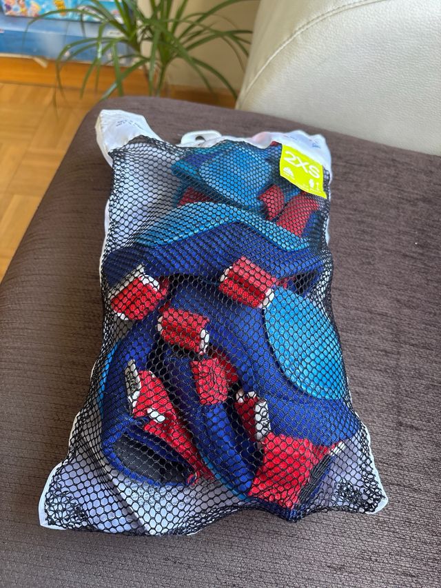 Protecciones de patinaje para niño de la marca “Oxelo”. Set de 3 protecciones: rodilleras, coderas y muñequeras. Talla 2XS (para niños de 3 a 7 años).
