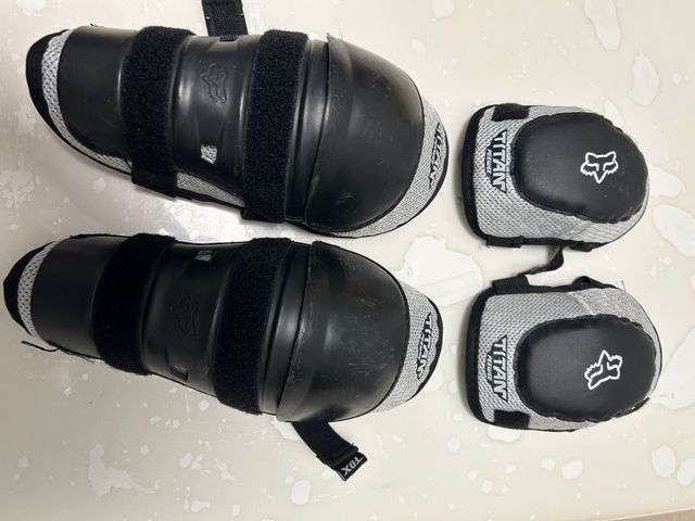 Set de protecciones Fox Titan para niño. Incluye rodilleras y coderas. - Diseño ergonómico. - Cierres de velcro ajustables. - Logo Fox en relieve.