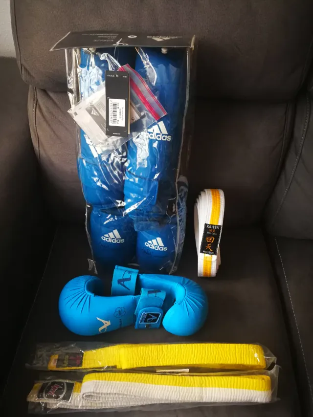 Detalles del productoLote de protecciones para kárate Adidas, homologadas por la WKF.