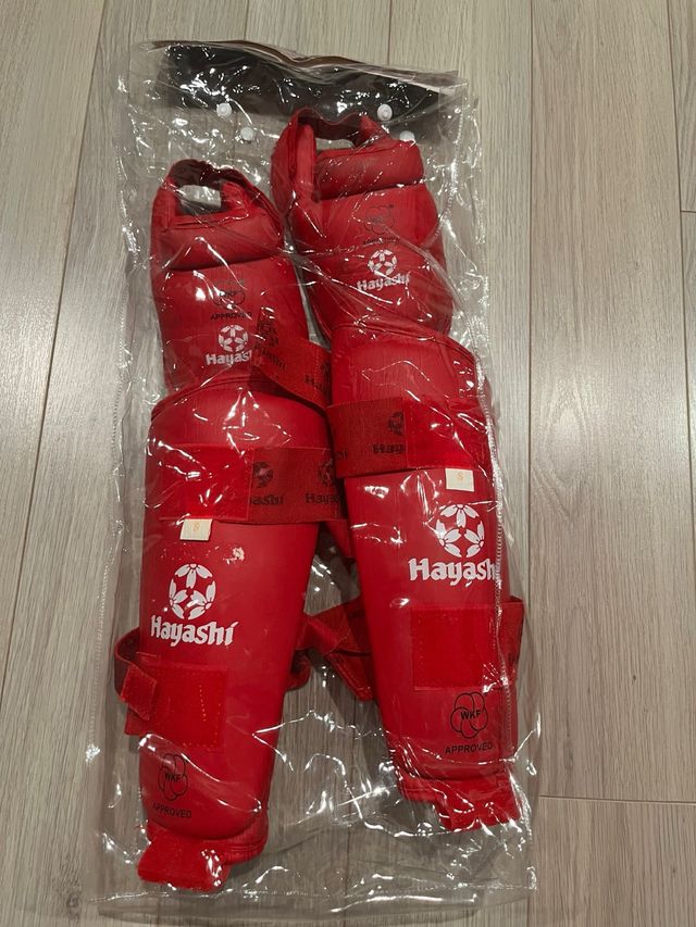 Detalles del productoProtecciones de karate Hayashi en color rojo, homologadas por la WKF.