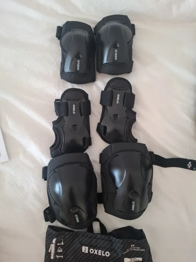 Detalles del productoSet de protecciones Oxelo para niños, ideal para patinaje o ciclismo. Incluye protecciones para codos, rodillas y muñecas.