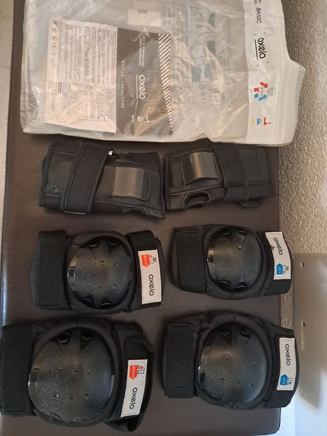 Detalles del productoSet de protecciones Oxelo para niños, ideal para patinaje o patinete. Incluye muñequeras, coderas y rodilleras.