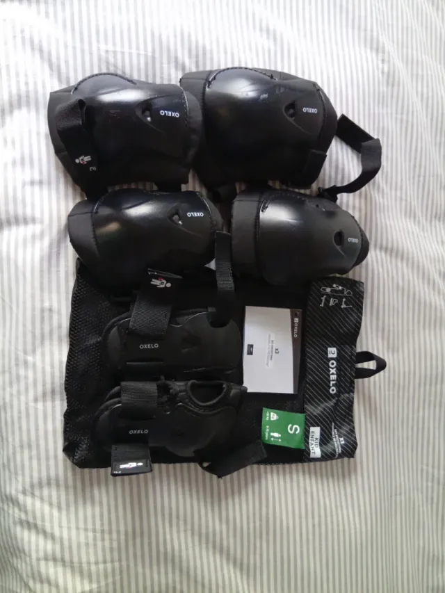 Detalles del productoSet de protecciones Oxelo para patinaje, ciclismo o monopatín. Incluye rodilleras, coderas y muñequeras.