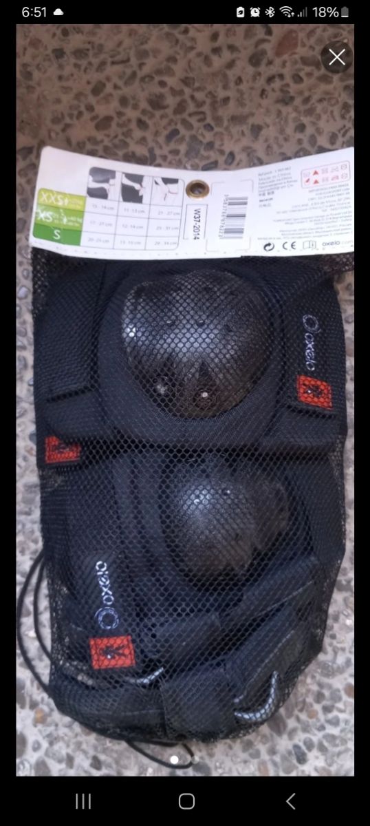 Set de protecciones Oxelo para patinaje o ciclismo. - Talla S. - Incluye rodilleras y coderas. - Cierre de velcro ajustable. - Malla transpirable.