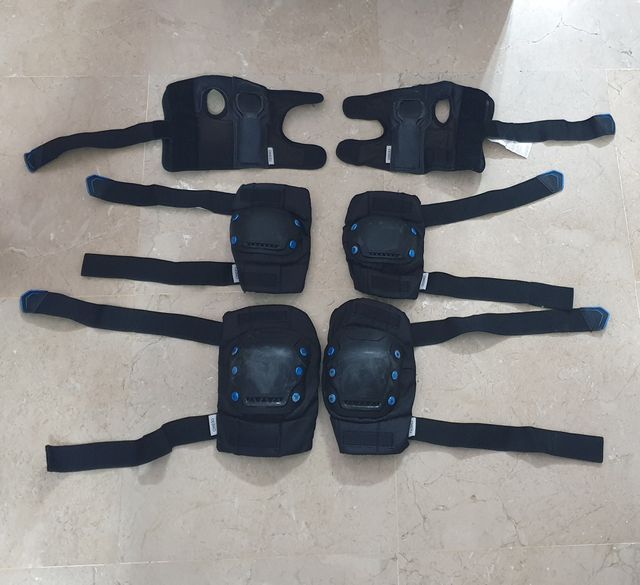 Conjunto de 3 protecciones (muñequeras, coderas, rodilleras). Color negro. Talla L.