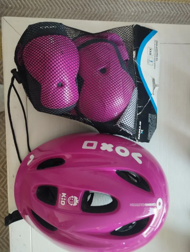 Detalles del productoSet de protecciones para patinaje de la marca Btwin. Incluye rodilleras, muñequeras y casco 47-53cm.