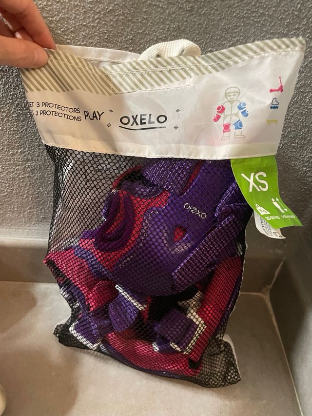 pack de protecciones de codo,rodilla y manos de decathlon.