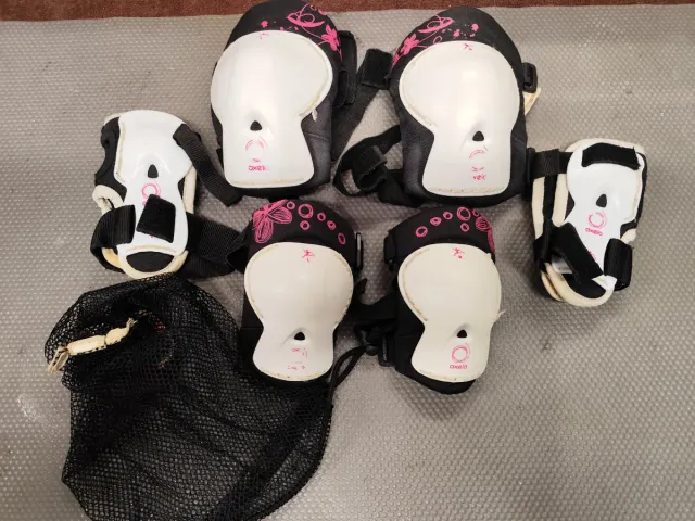 Detalles del productoSet de protecciones para patinaje infantil de la marca Oxelo. Incluye rodilleras y coderas.