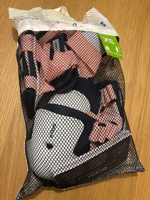 Detalles del productoSet de protecciones para patinaje en talla XS. Incluye rodilleras, coderas y muñequeras.