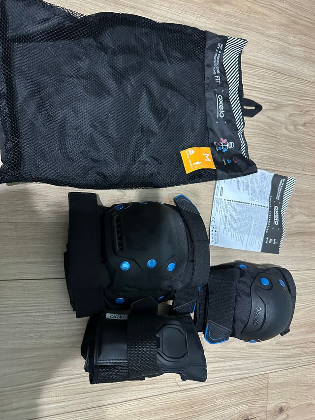 Detalles del productoSet de protecciones Oxelo para patinaje o ciclismo. Incluye rodilleras, coderas y muñequeras.