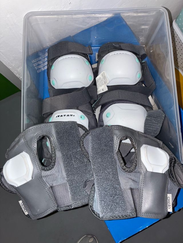 Set de protecciones de patines , rodilleras , coderas y muñequeras , son de Oxelo ( Decathlon) talla M están en buen estado . Entrego en mano o envío por Wallapop