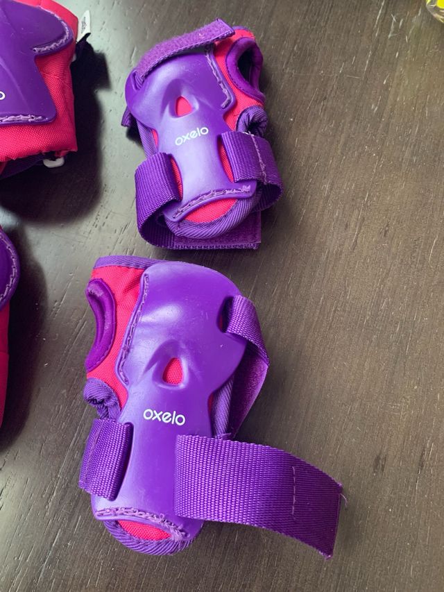 Detalles del productoProtecciones de patines: rodilleras, coderas y muñequeras.Talla 2XS, para niños con menos de 25kg (3 a 7 años aprox.) Tiras autoadherentes elásticas para ajustar la talla. Marca Oxelo