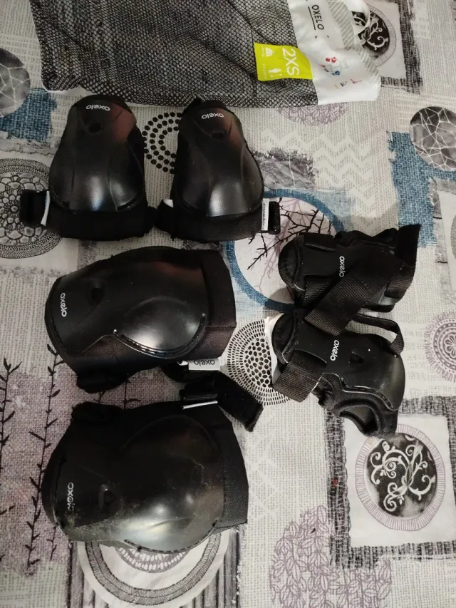 Set de protecciones Oxelo para skate o patinaje. - Talla 2XS. - Incluye rodilleras, coderas y muñequeras.