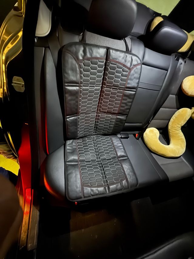 Detalles del productoProtector de asiento de coche con un diseño hexagonal y costuras en contraste. Ideal para proteger la tapicería.