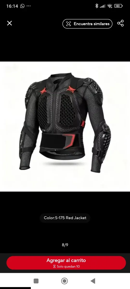 Detalles del productoProtector corporal para moto, modelo S-175 en color rojo.