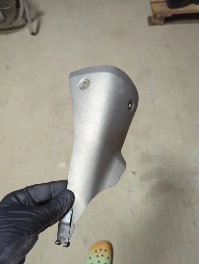 Protector de escape para BMW R1200RS. - Pieza de metal plateado. - Diseño curvo que se adapta a la forma del escape. - Incluye dos puntos de anclaje.
