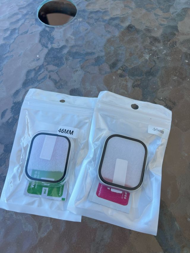 Protector de pantalla para Apple Watch de 46mm. Incluye toallitas para la instalación. - Tamaño: 46mm - Material: Cristal templado