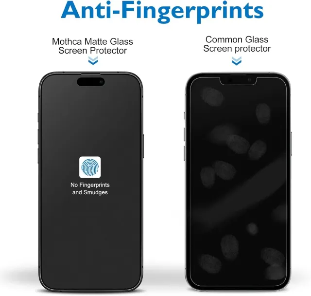 HD transparente: El Mothca protector pantalla para iPhone 16/ iPhone 15 mate fabricada con vidrio japonés "AGC Glass", tiene un acabado mate, pero también es transparente HD. (Sin embargo, la claridad se reducirá en comparación con la película protectora HD)