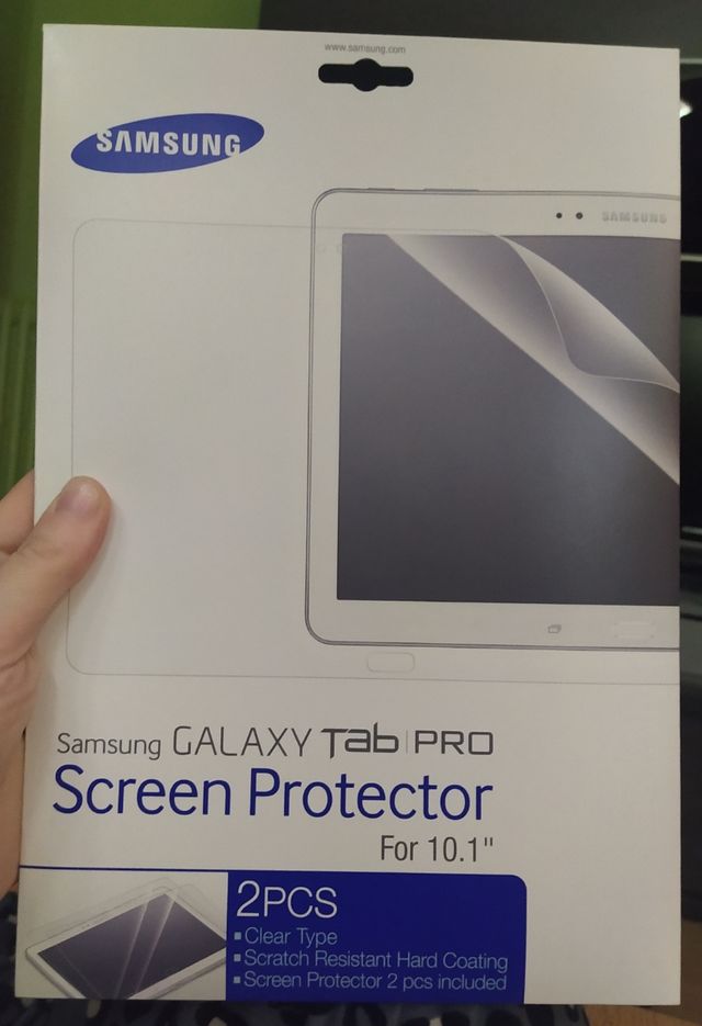 Un protector de pantalla de tablet Samsung. Aunque en la caja pone dos, solo vendo uno.