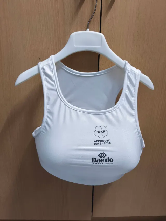 Detalles del productoProtector de pecho blanco para artes marciales, aprobado por la WKF.