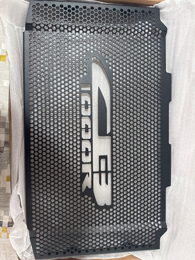 Protector de radiador de alta calidad para Honda CBR 600RR. - Fabricado en metal resistente. - Diseño con patrón de panal de abeja. - Logotipo CBR grabado.