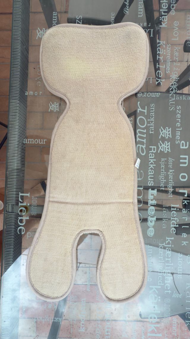 Detalles del productoSe vende protector para silla de coche para bebé. Es de color beige claro y tiene una textura suave.