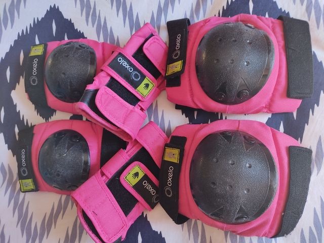 Juego completo de protección color rosa para patines, patinete, skate... Usados pero muy bien cuidados.
