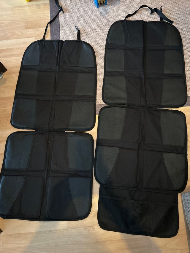Detalles del productoSe venden dos protectores para asientos de coche. Son negros y están en buen estado. Uno tiene bolsillo abajo, el otro no.