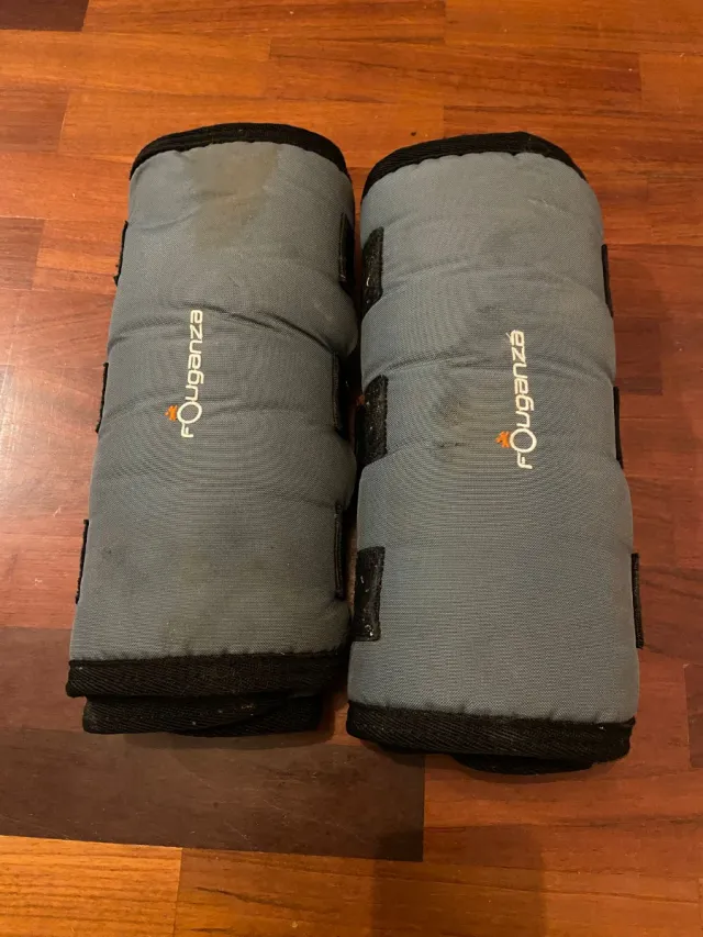Set de protectores de transporte de la marca Fouganza. Son ideales para proteger las extremidades. - Color gris. - Cierre de velcro.