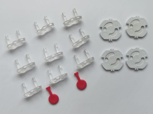 Protectores enchufes seguridad bebés. 9 de un tipo y 4 de otro.
