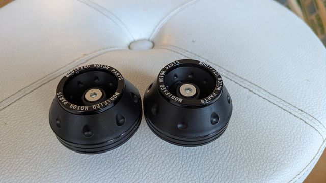 Detalles del productoProtectores de horquilla para moto, diseñados para ofrecer protección en caso de caída. Puede valer para otros partes de la moto. Faltaría una varilla roscada de parte a parte no incluida.