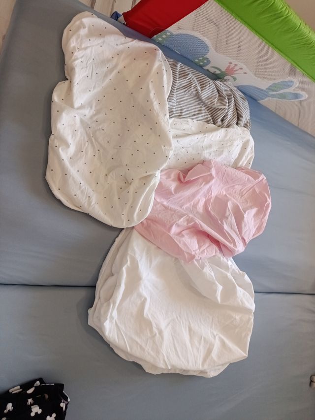 Detalles del productoCuatro protectores y bajeras para capazo de bebé.