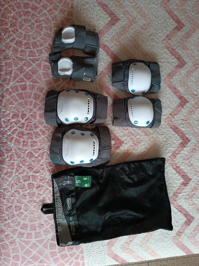 Set de protectores para patinaje de Decathlon. - Talla S. - Incluye rodilleras y coderas. - Cierre de velcro ajustable. - Diseño ergonómico.