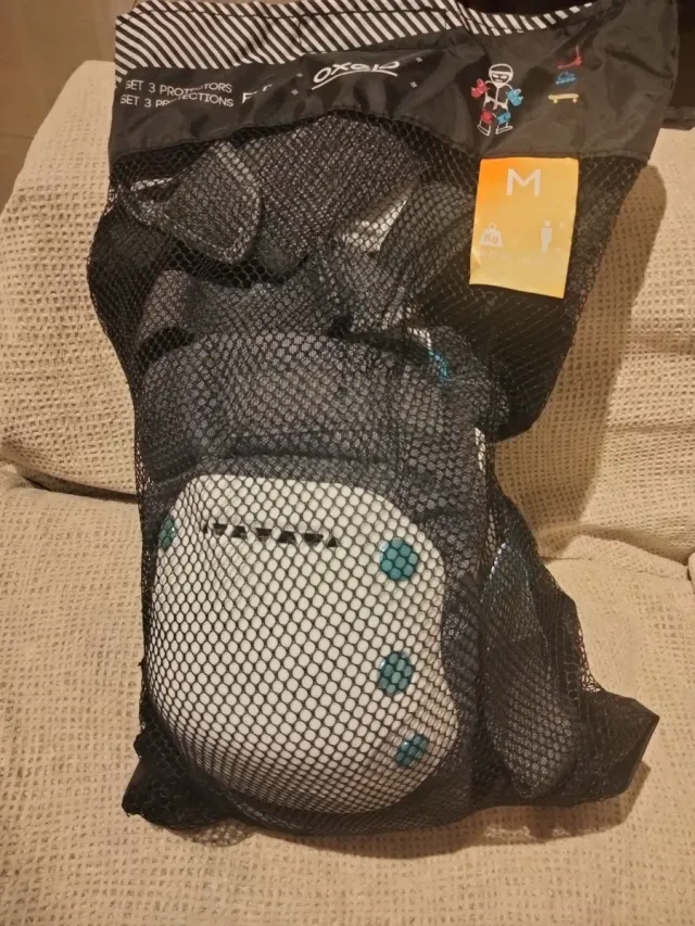 Detalles del productoSet de protectores Oxelo para patinaje, talla M. Usados una sola vez.