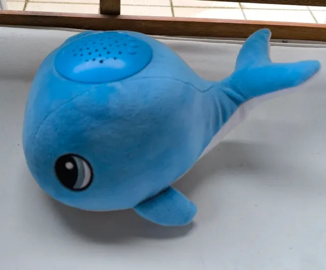 Detalles del productoPeluche proyector con forma de ballena azul para bebés. Suave y tierno, ideal para acompañar en la noche.
