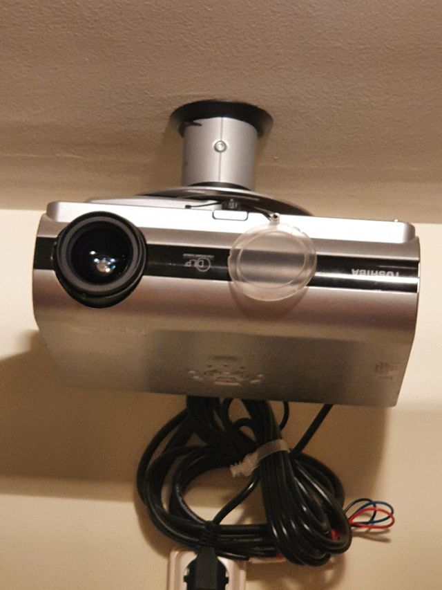Proyector toxhiba con soporte de pared incluido y pantalla reflecta de 150.