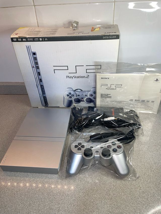 En su caja · Sony · PlayStation 2 Slim · Plateado
