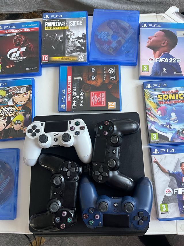 PS4 (PlayStation 4) con 4 mandos y juegos