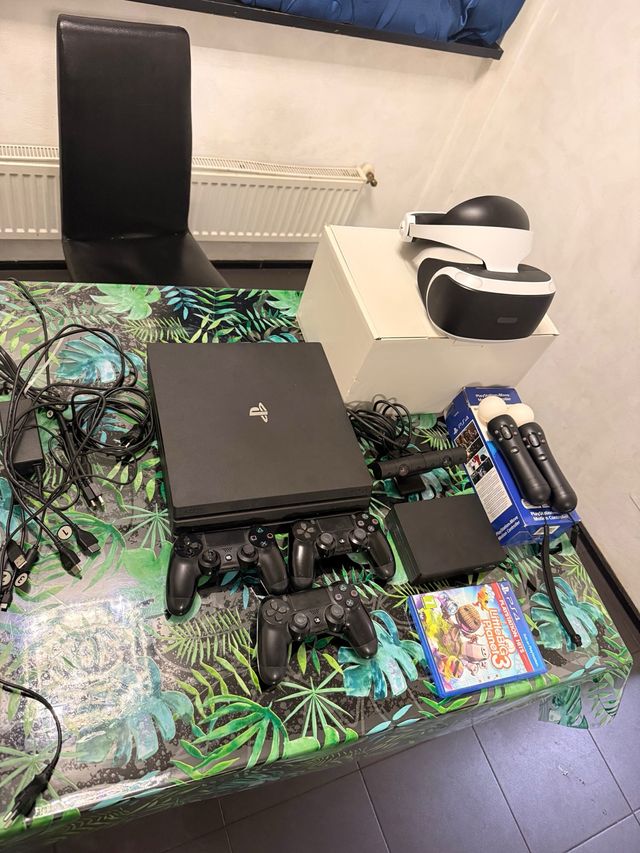 Detalles del productoConsola PlayStation 4 Pro junto con el casco de realidad virtual Sony VR. gafas de realidad Virtual.