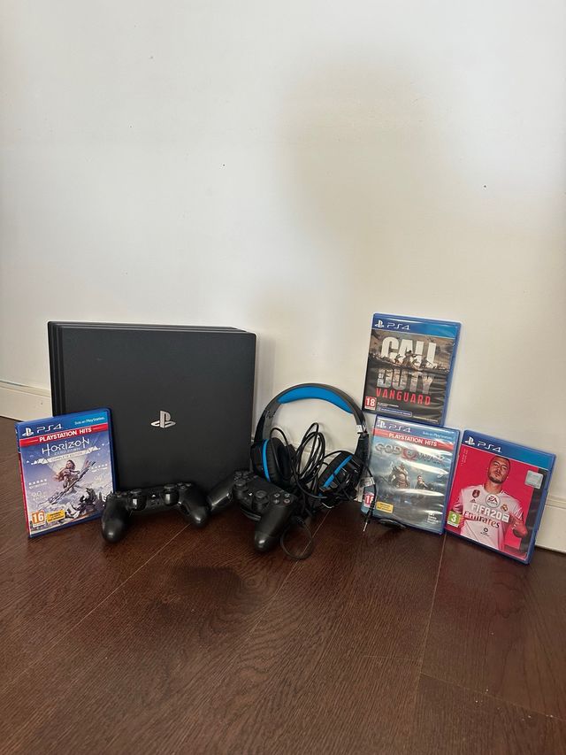 PS4 Pro 1 TB + 2 mandos + cascos + 4 juegos